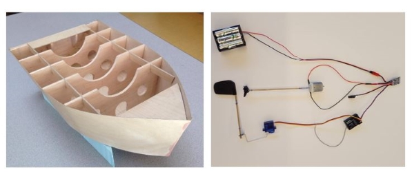 In a six-member team we designed and constructed a remote controlled model fireboat which equipped with propulsion system and pressure system for pumping water.